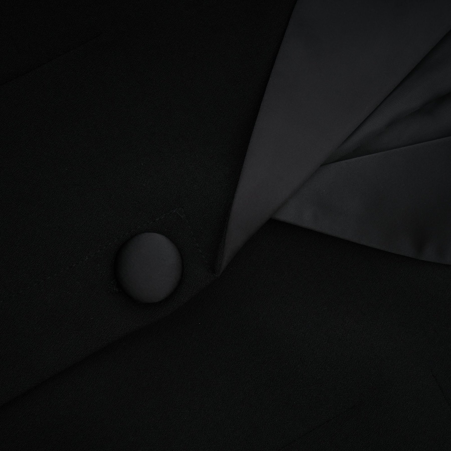 Alessandra Maxi Dress exudes elegance and sophistication in Classic hue, adorned with exquisite crystal embellishments. This sartorial masterpiece, featuring black peak lapels and long sleeves, is a timeless addition to any wardrobe. Crafted with meticulous attention to detail, it boasts two front patch pockets and a flattering flared hem. The dress is secured with a front button fastening and falls gracefully to an ankle length. Fashioned from a luxurious blend of 90% Polyester and 10% Rayon, it epitomizes refined style and impeccable craftsmanship.