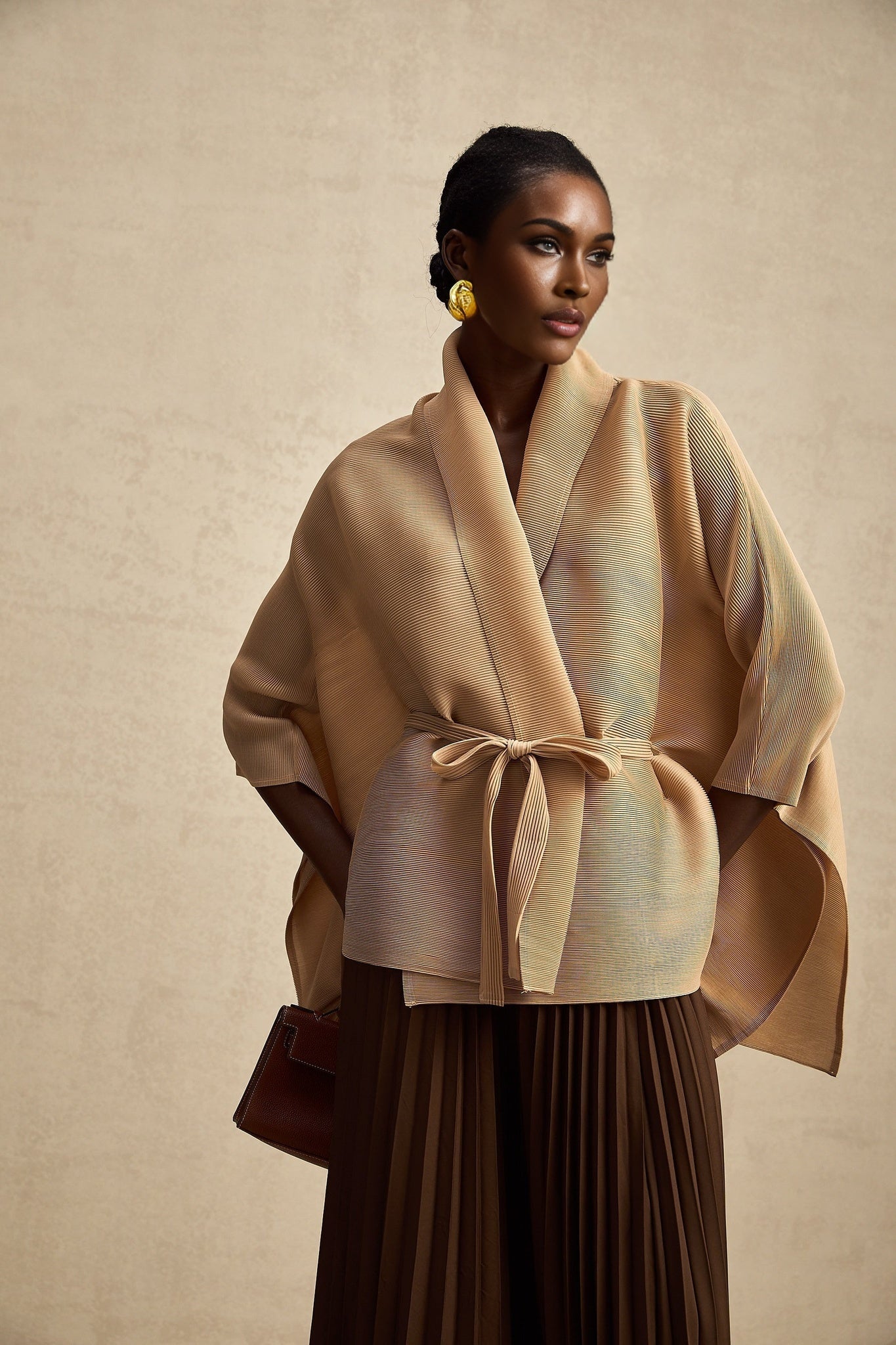 Elevate your wardrobe with the exquisite Alina Skirt & Top Set, a harmonious fusion of elegance and sophistication. The V-neck top, featuring captivating cape design and long slit sleeves, effortlessly complements the pleated maxi skirt with its elasticated waistband and maxi length. Crafted from 100% luxurious Terylene, this ensemble exudes timeless charm and modern allure. Whether dressed up for a special occasion or styled casually for everyday glamour, the Alina set is a statement of refined taste and impeccable style. Embrace the art of luxury with this impeccable ensemble that promises to elevate your look with effortless grace.