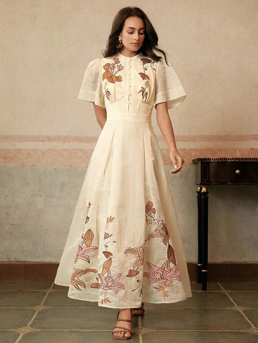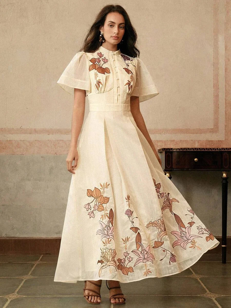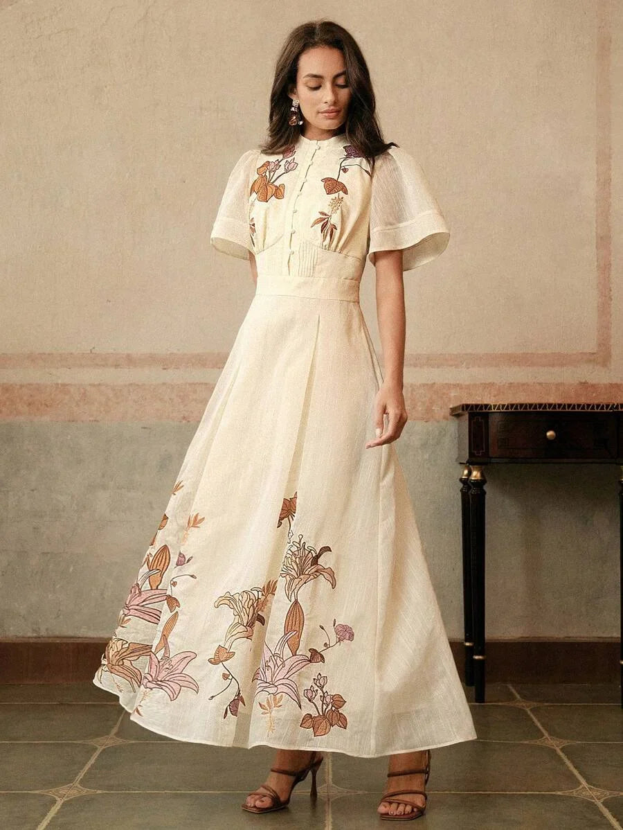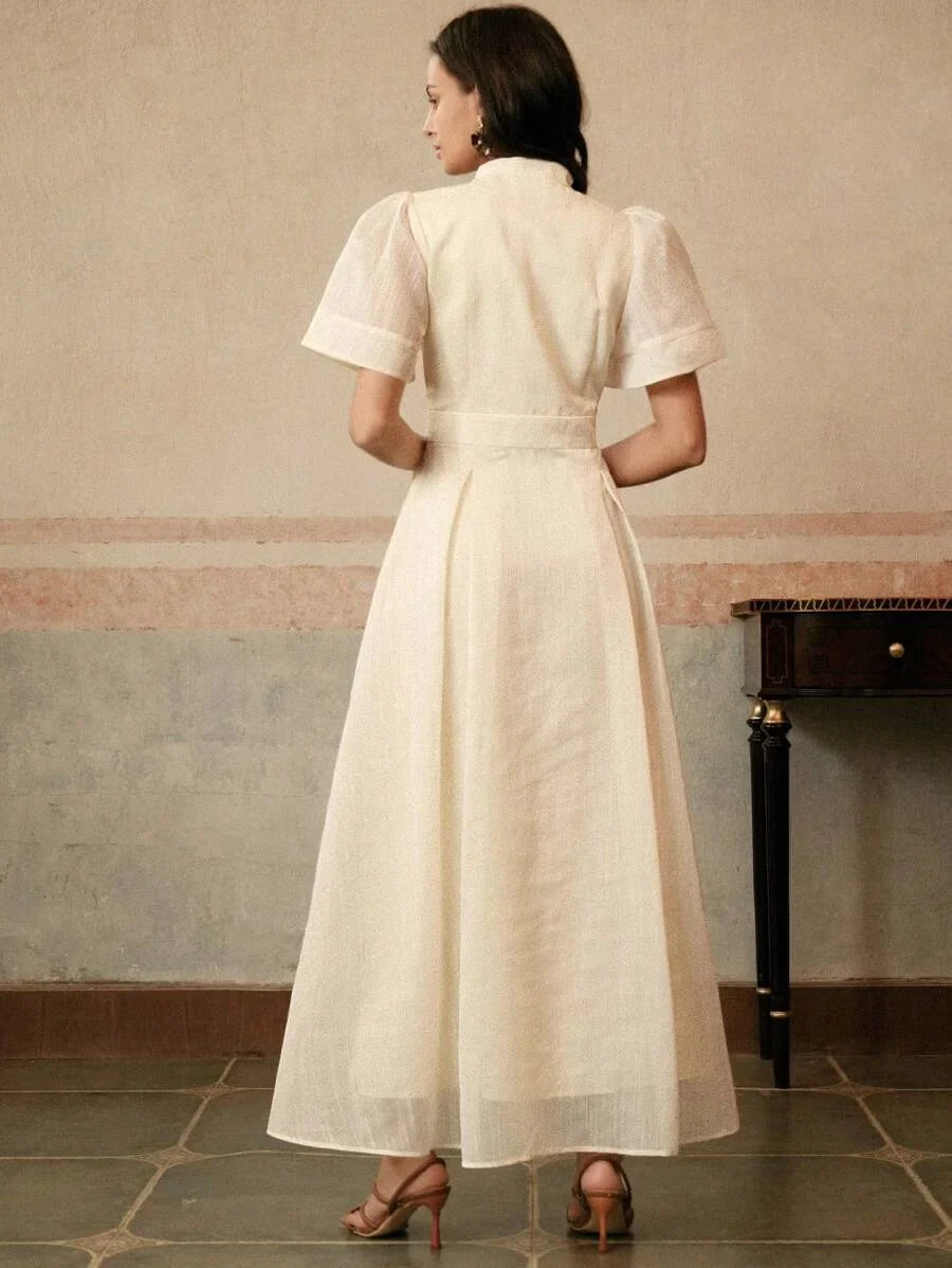 Annalisa Maxi Dress - Stand Collar - Wedding - Flounce Sleeve - High Waist - A Line