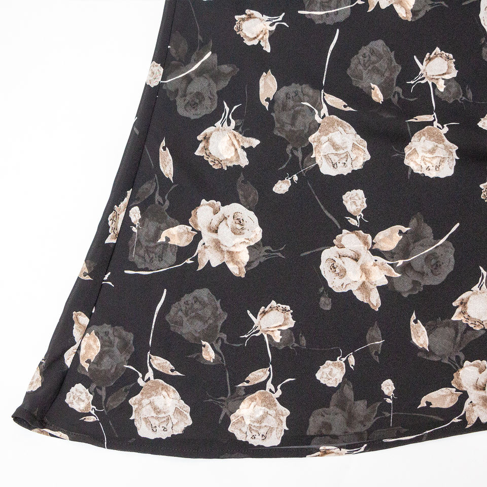 Stay stylish and chic with this black sleeveless midi dress featuring a sexy V-neck and trendy floral print. Made from a blend of spandex and polyester, this dress is breathable and environmentally friendly. Perfect for various occasions like parties or holidays, this dress offers a modern romantic look. The woven fabric and digital print technique add a touch of sophistication to this fashionable piece. Enjoy the comfortable fit and unique design of this must-have dress for the upcoming seasons of spring, summer, and fall.