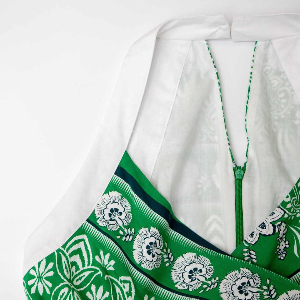 This Bohemian Green Halter Maxi Dress is perfect for various occasions like casual outings, parties, or vacations. Made from breathable and eco-friendly Spandex/Polyester fabric, this dress features a sleeveless halter neckline and a stylish woven design. The digital print adds a modern touch to the dress, making it a fashionable choice. The silhouette is flowy and draped, ideal for a natural and chic look. Whether you're heading to a summer beach party or a springtime celebration, this Boho Chic dress will make you stand out with its unique style.