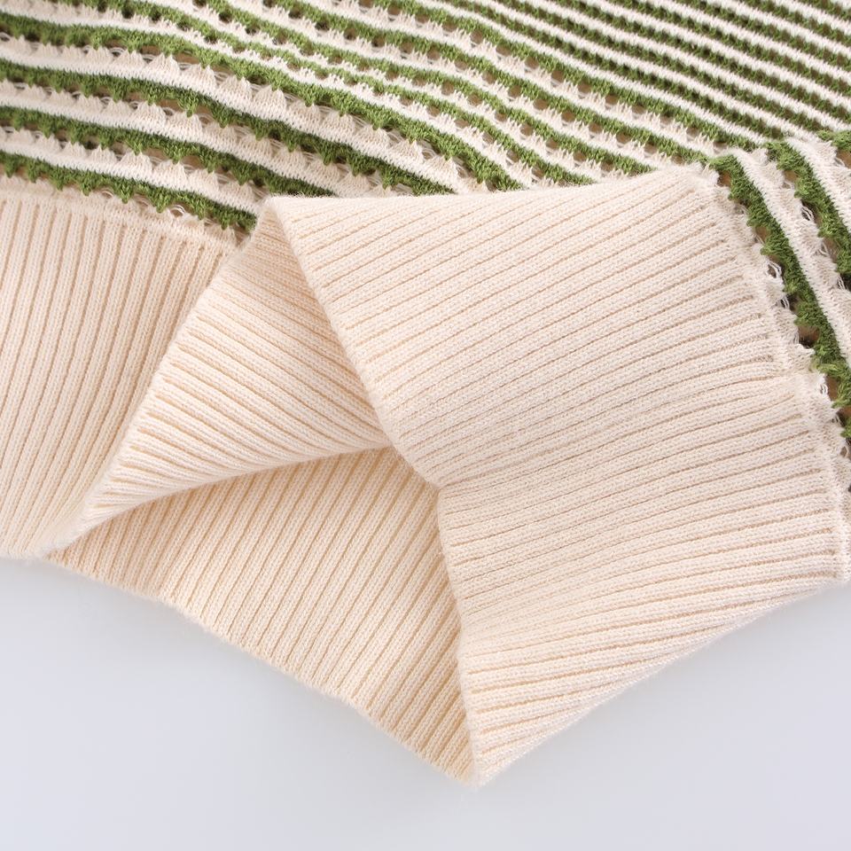 Stay stylish and cozy with our brand new women's knit sweater. Made from 100% cotton, this top features a classic V-neck and a trendy striped design. Perfect for a casual day out or a relaxed evening in, this sweater exudes comfort and style. The regular fit and breathable fabric make it a must-have for any fashion-forward woman's wardrobe. Embrace the vintage charm and versatility of this knit sweater for a timeless addition to your collection. Order yours today!