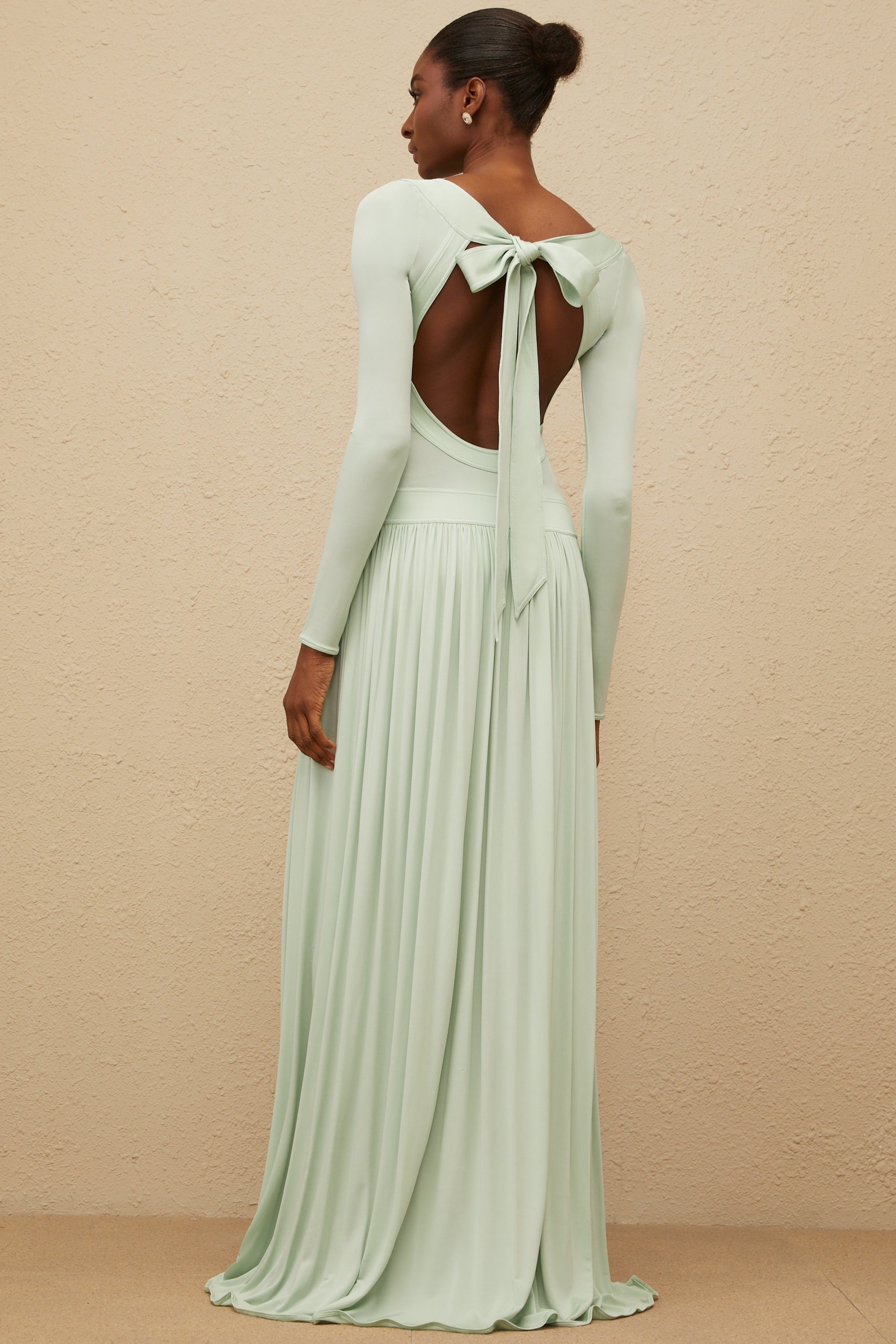 Cherish Maxi Dress - Mint Green - Long Sleeve - Open Back - Self-Tie