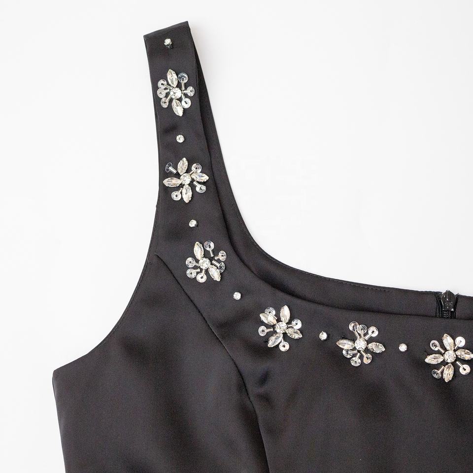 Evening Dress – Black Mermaid – Square Neckline – Elegant Midi Style