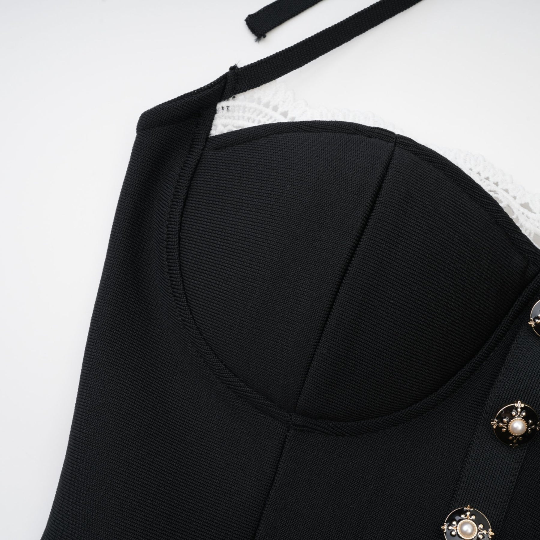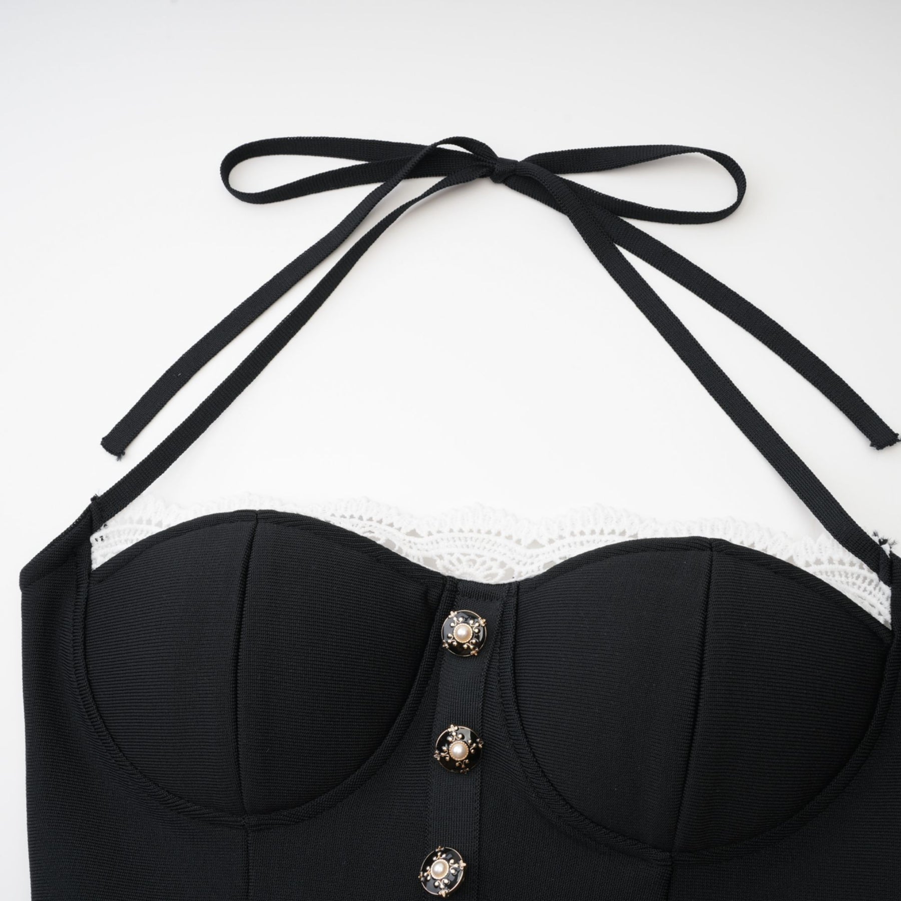 Elena Dress - halter neck Sleeveless Bustier Lace-Trim Mermaid Midi
