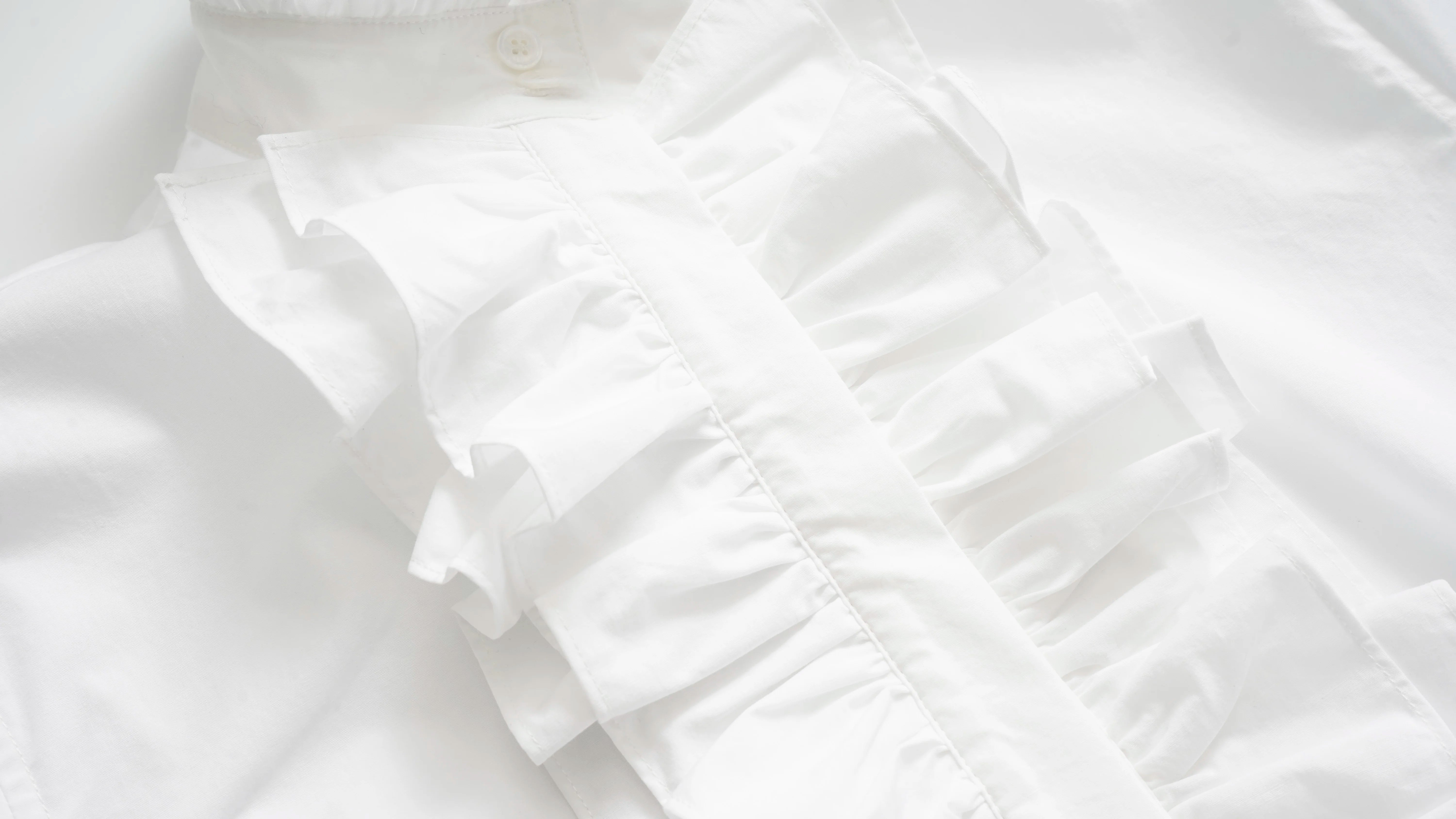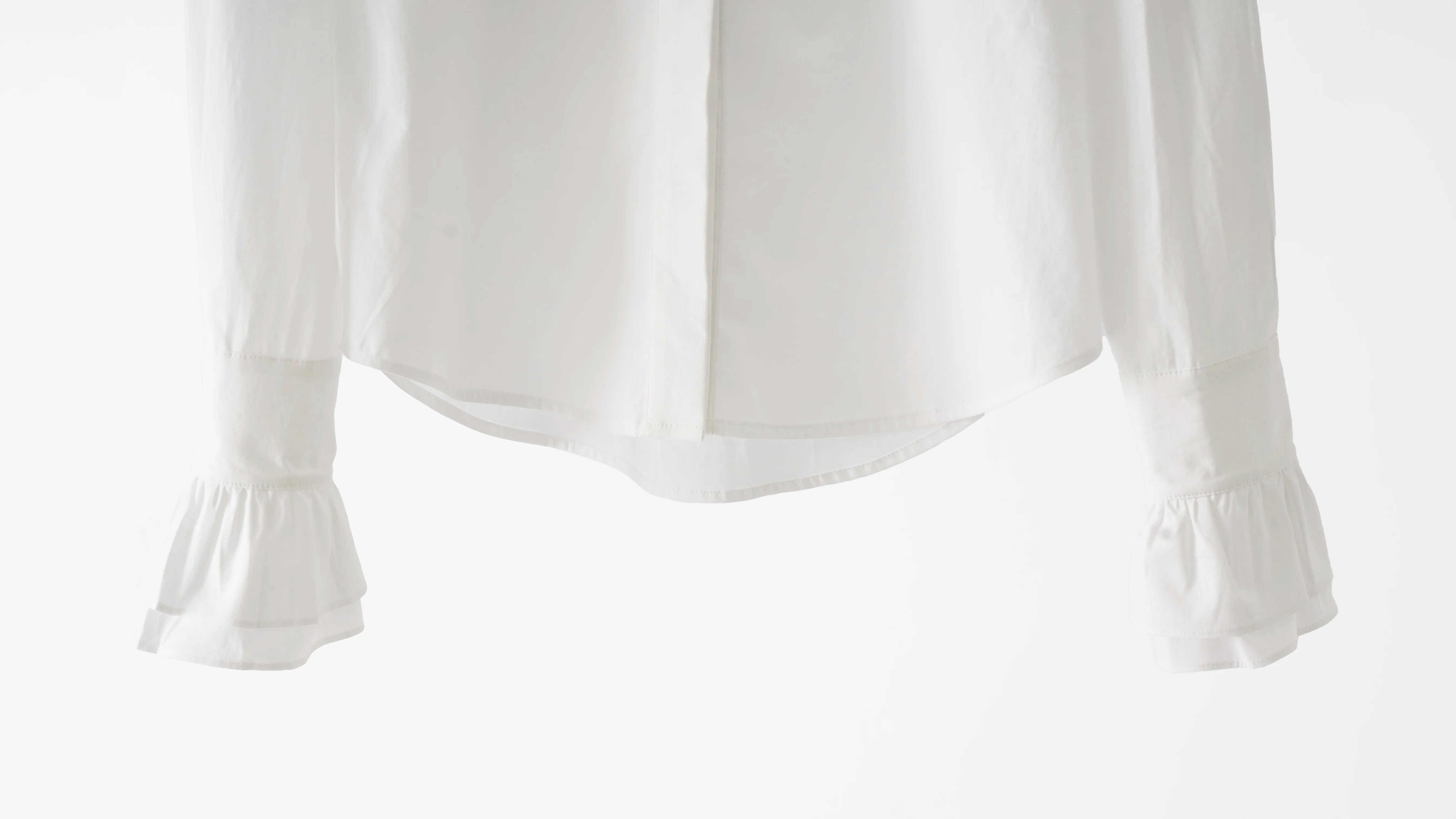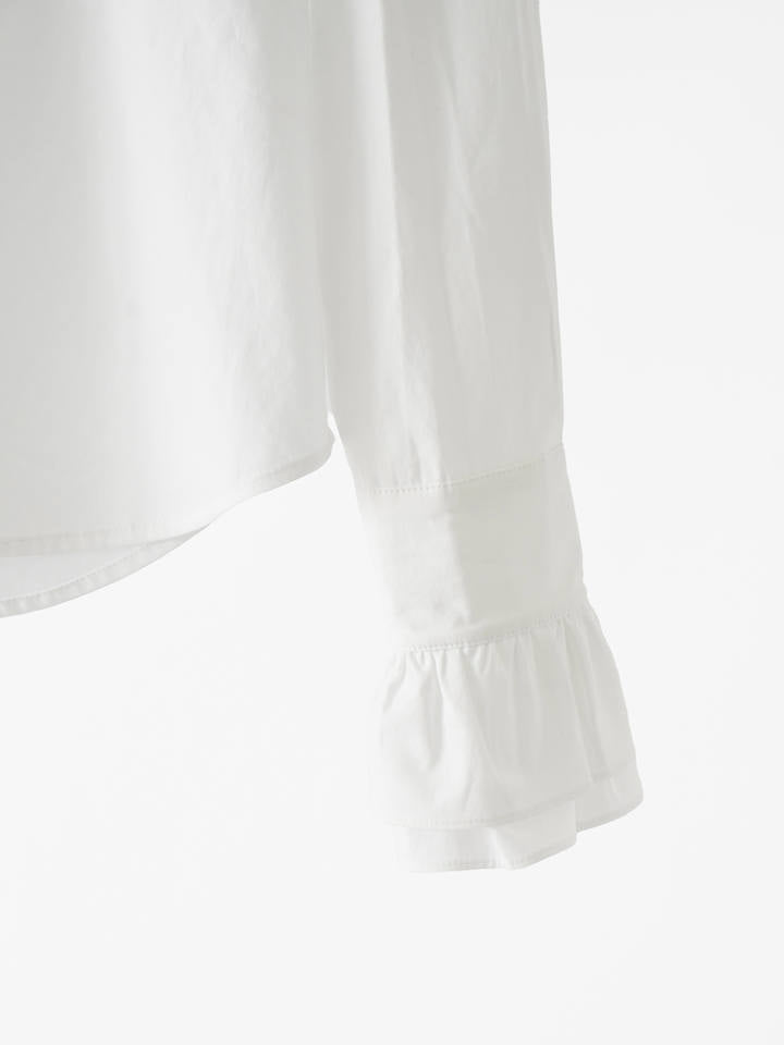 Add timeless polish to your wardrobe with this Van Hoef ruffle-front blouse, designed to elevate any outfit in seconds. The high ruffle neckline and ruffled placket create a refined statement, while the long sleeves with ruffle cuffs add a soft, feminine finish. Crafted in a smooth, crisp fabric, it looks sharp tucked into tailored pants or a skirt, yet feels effortless enough for everyday wear. Style it with denim for a chic contrast or pair it with matching pieces for a clean, coordinated look.