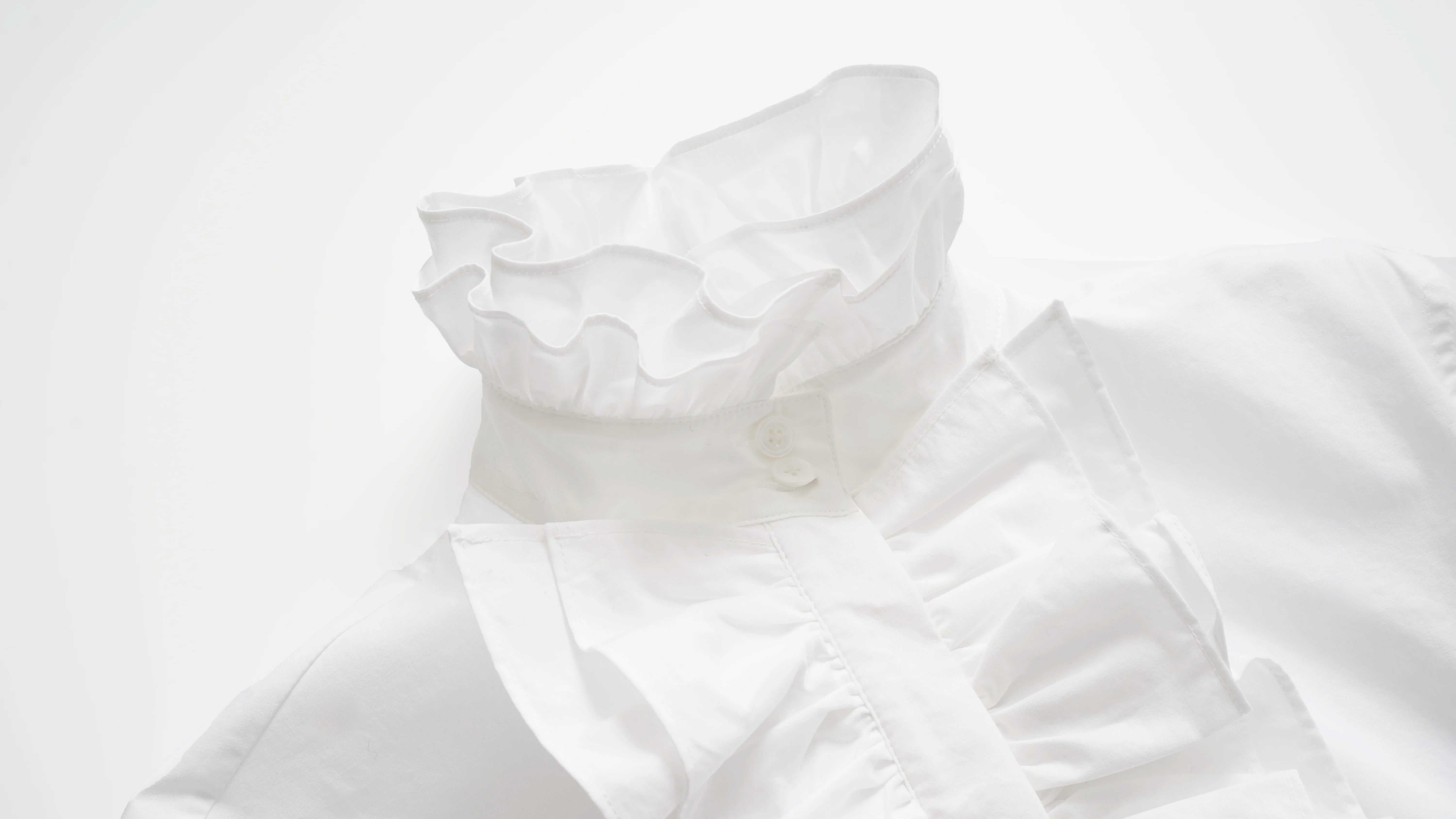 Harper Van Hoef Ruffle Front High-Neck Blouse