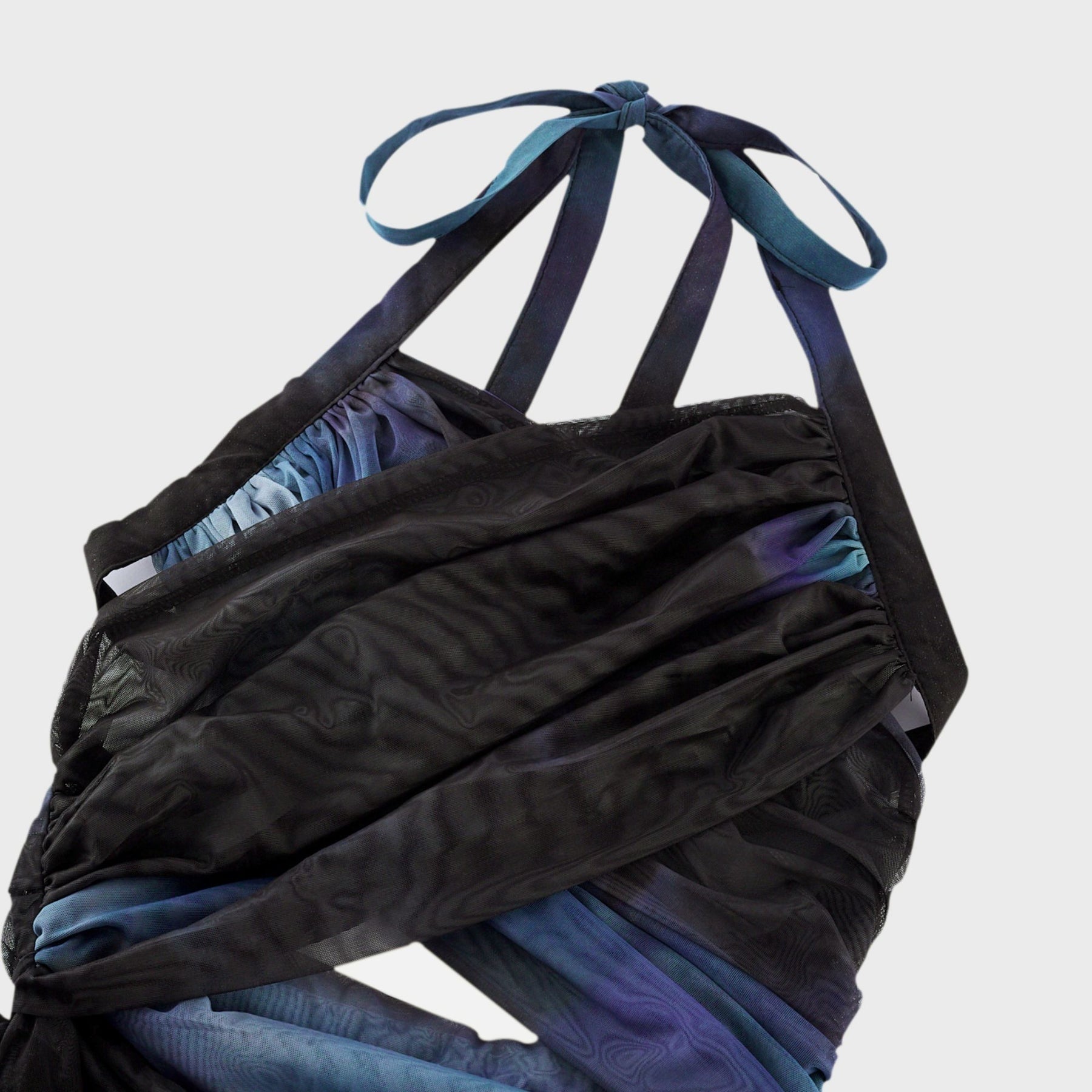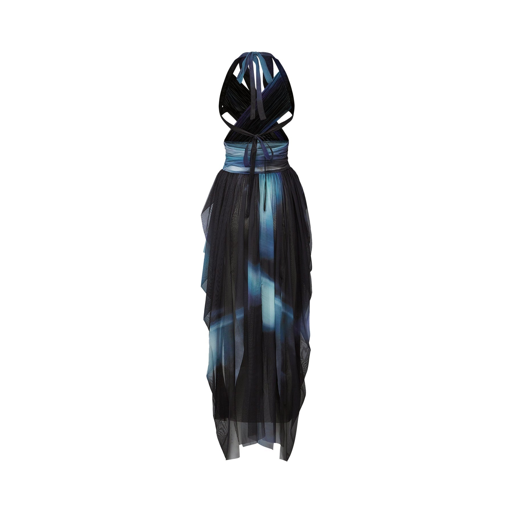 Kaylie Maxi Dress - Sleeveless Halter Neck - Bustier Style with Cut-Outs - Pleated with Side Slit - Ombre Design