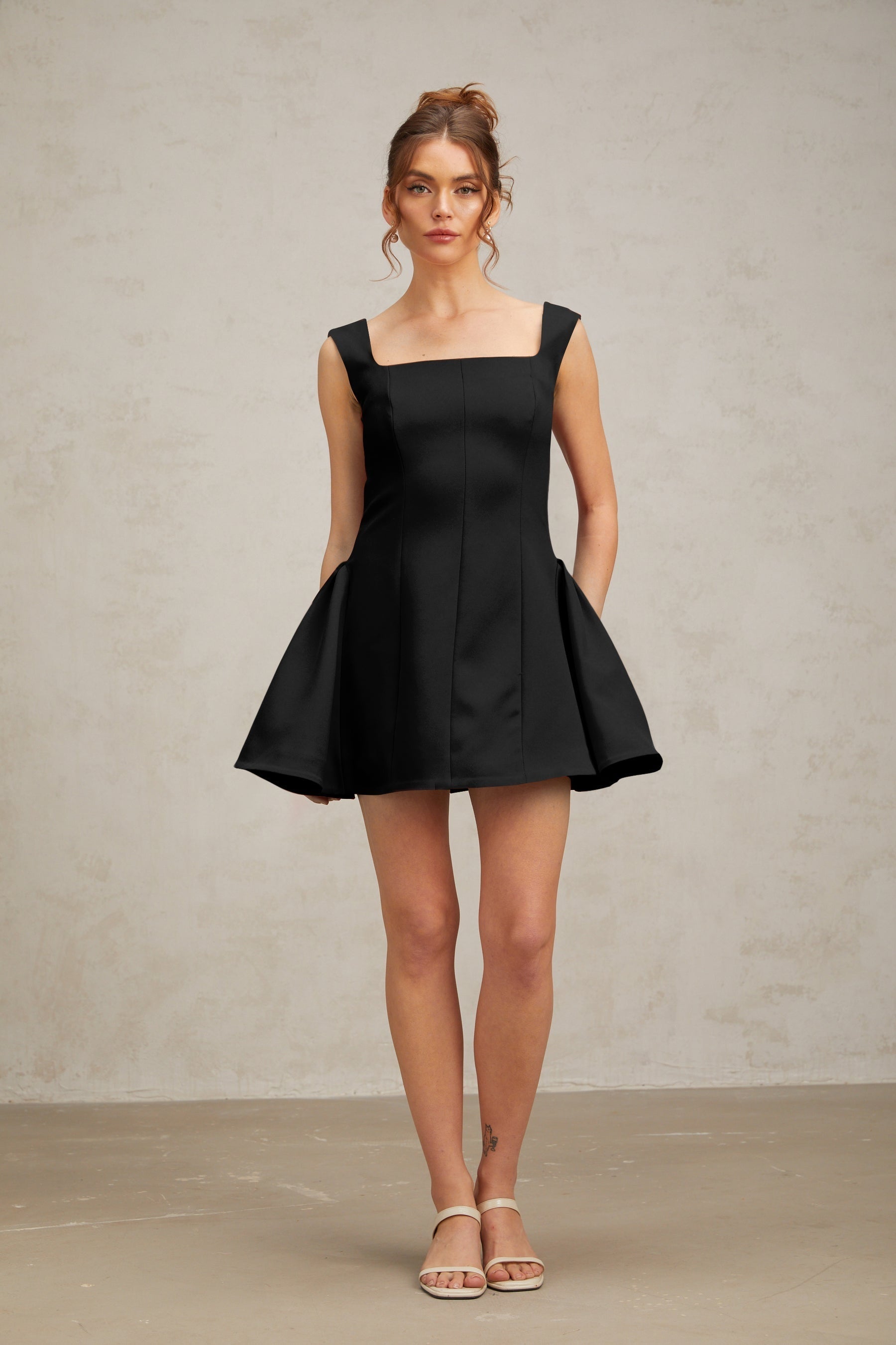 Lainey Mini Dress - Square Neck - Sleeveless - Open Back - Puffed Hem
