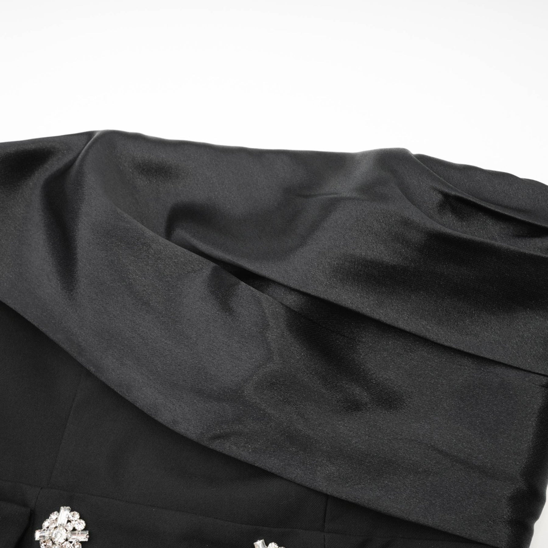 Lorelei Mini Dress: Embrace elegance with our off-the-shoulder masterpiece, the Lorelei Mini Dress. Designed with a bustier-style bodice and an alluring asymmetric silhouette, this dress exudes sophistication. The layered detailing and exquisite front button accents add a touch of luxury, while the flared hem creates a graceful movement with every step. Crafted from 100% Polyester, this dress is a true symbol of refined taste. Elevate your wardrobe with the Lorelei Mini Dress and make a statement at any upscale event. Available in classic black, this dress is a timeless addition to your collection.