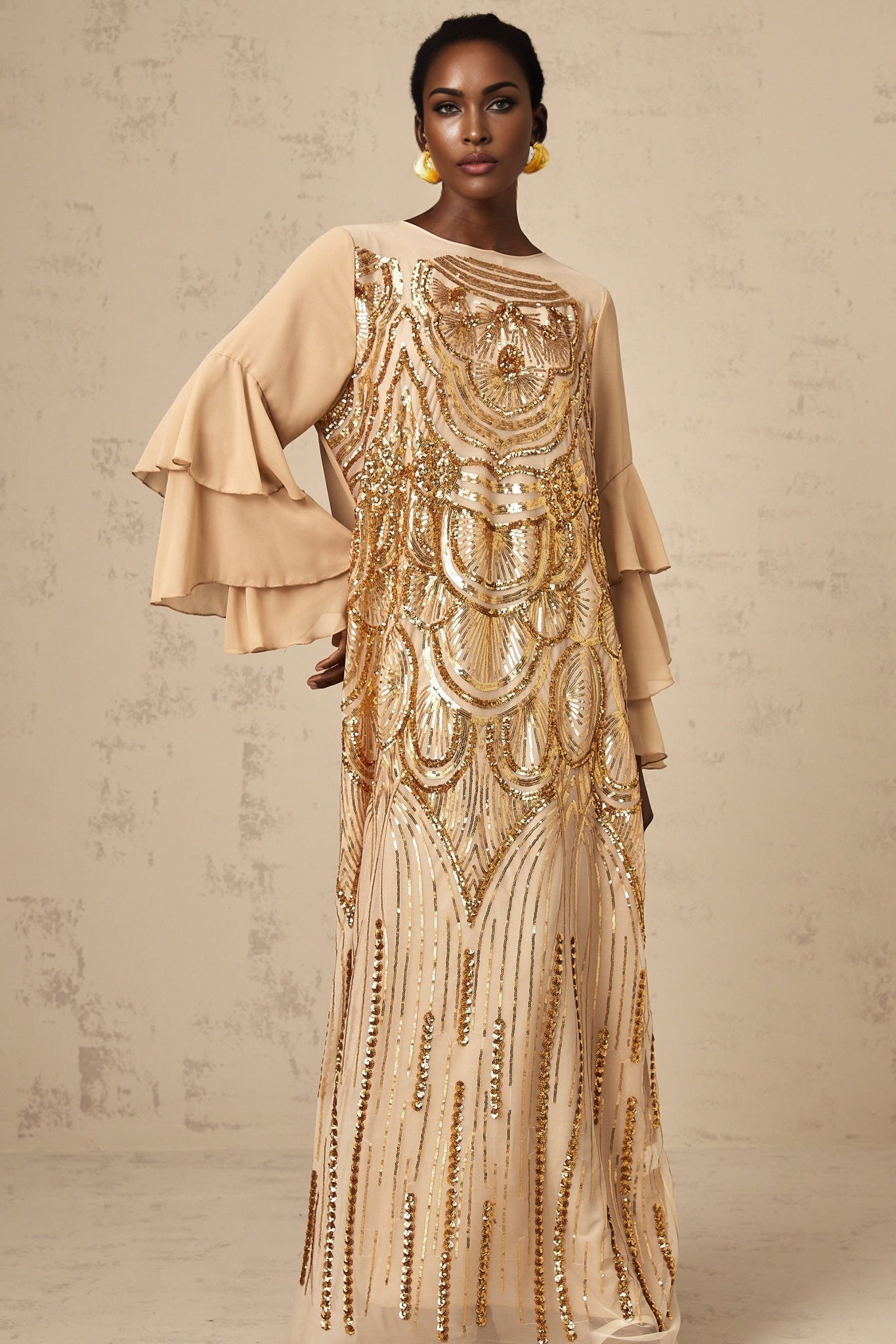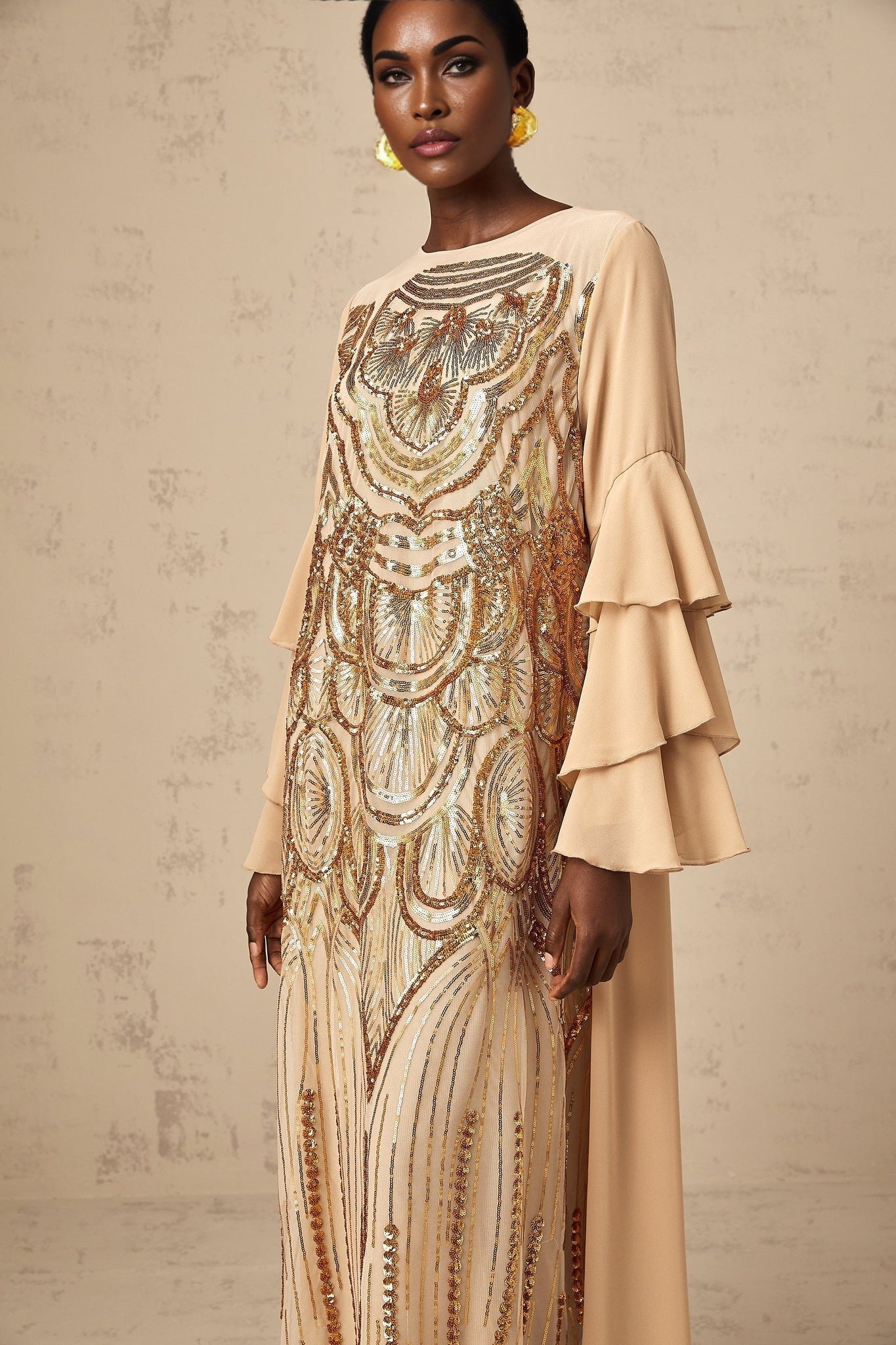 Mackenzie Maxi Dress – Round Neck – Long Ruffled Sleeves – Tulle Design