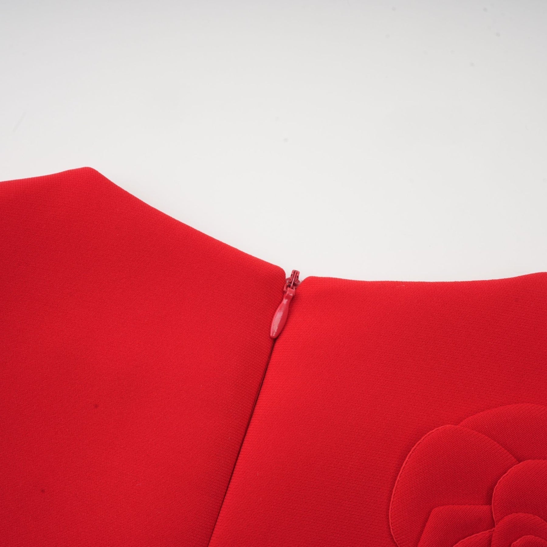 Mackenzie Mini Dress: Elevate your wardrobe with the exquisite floral appliqué detailing on this luxurious piece. Designed with a flattering round neck and chic short sleeves, this thigh-length dress exudes sophistication. The concealed rear zip fastening ensures a seamless silhouette, while the 75% Cotton and 25% Terylene fiber composition offers both comfort and durability. Lined for a perfect fit, this dress features a straight hem for a timeless appeal. Embrace elegance effortlessly in the Mackenzie Mini Dress.