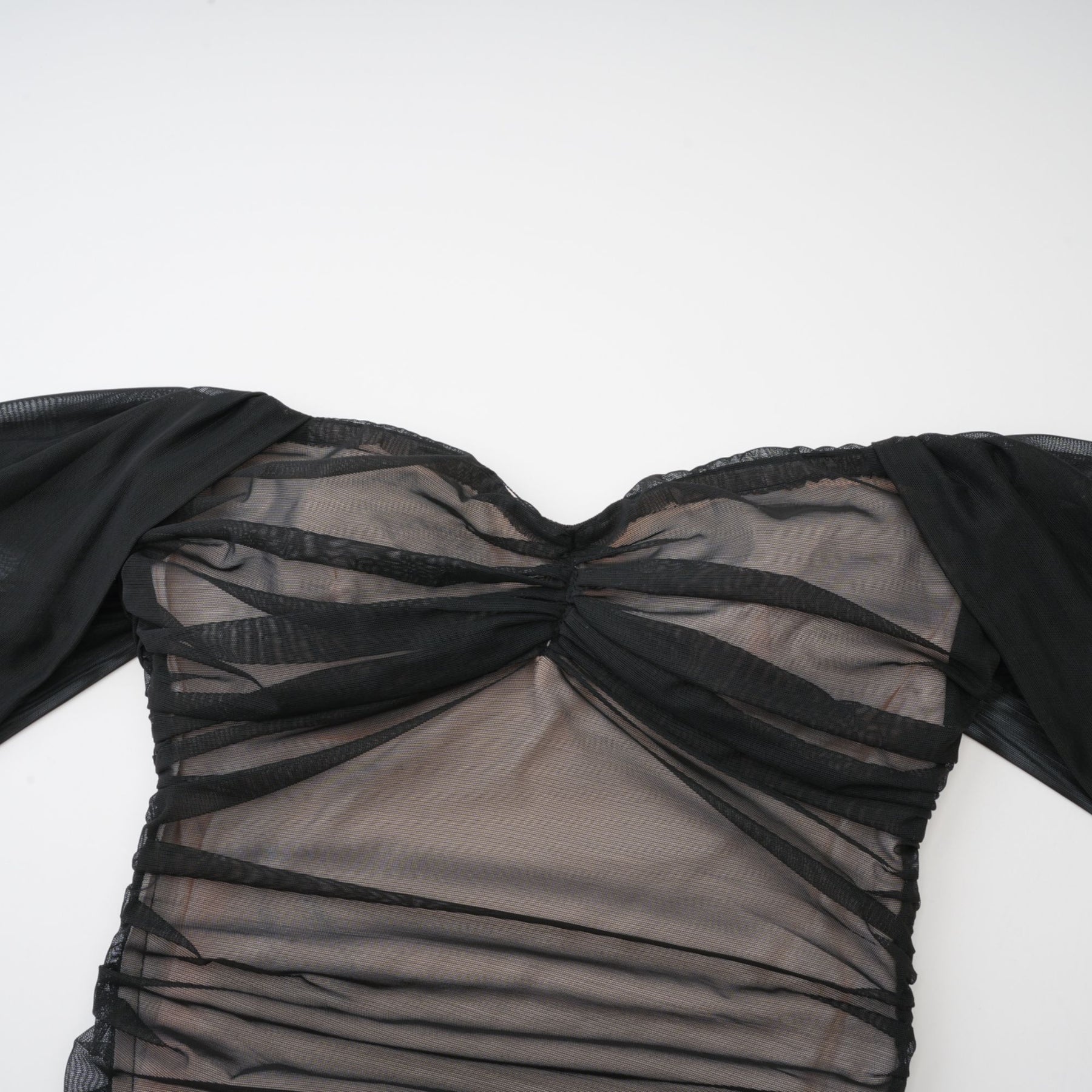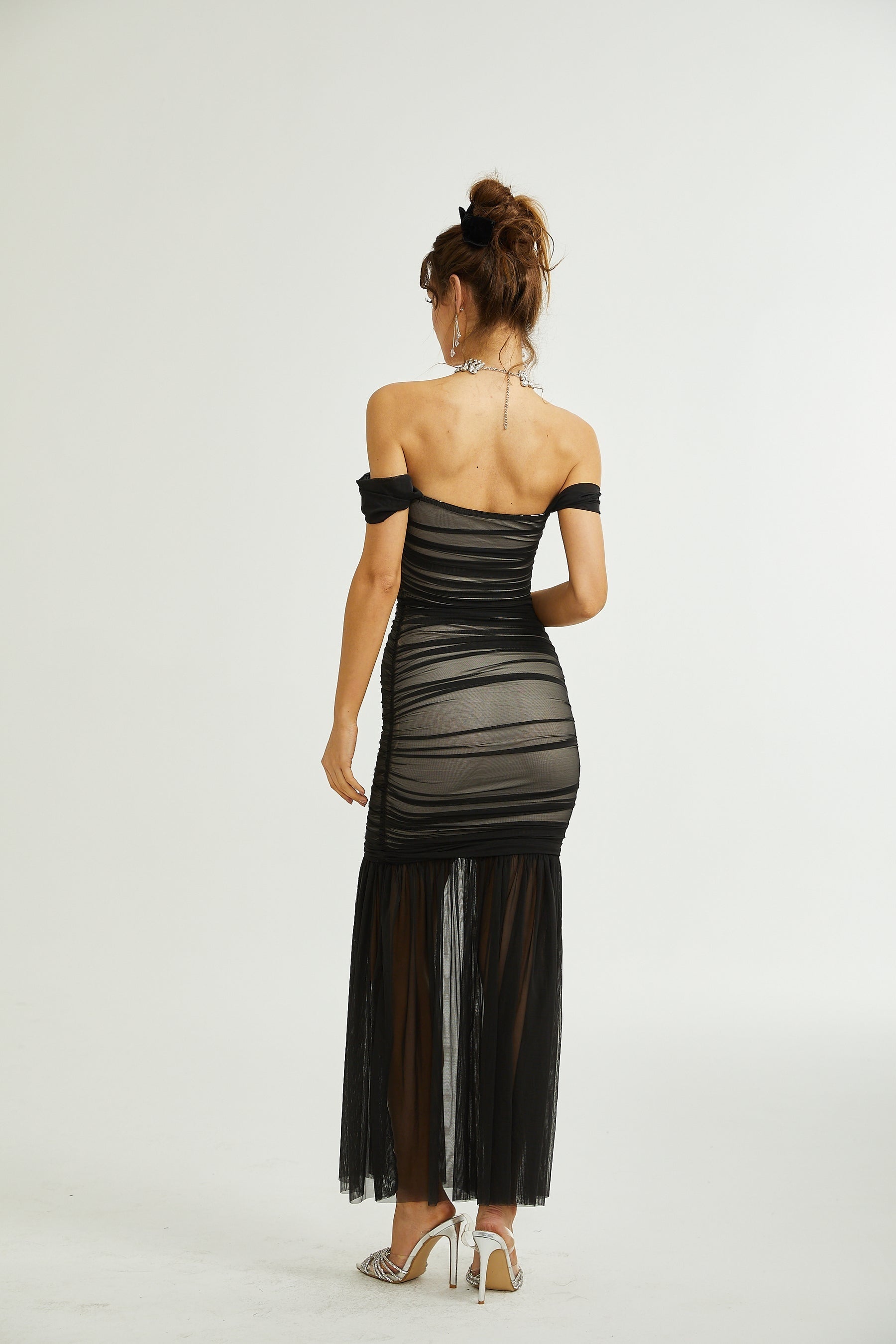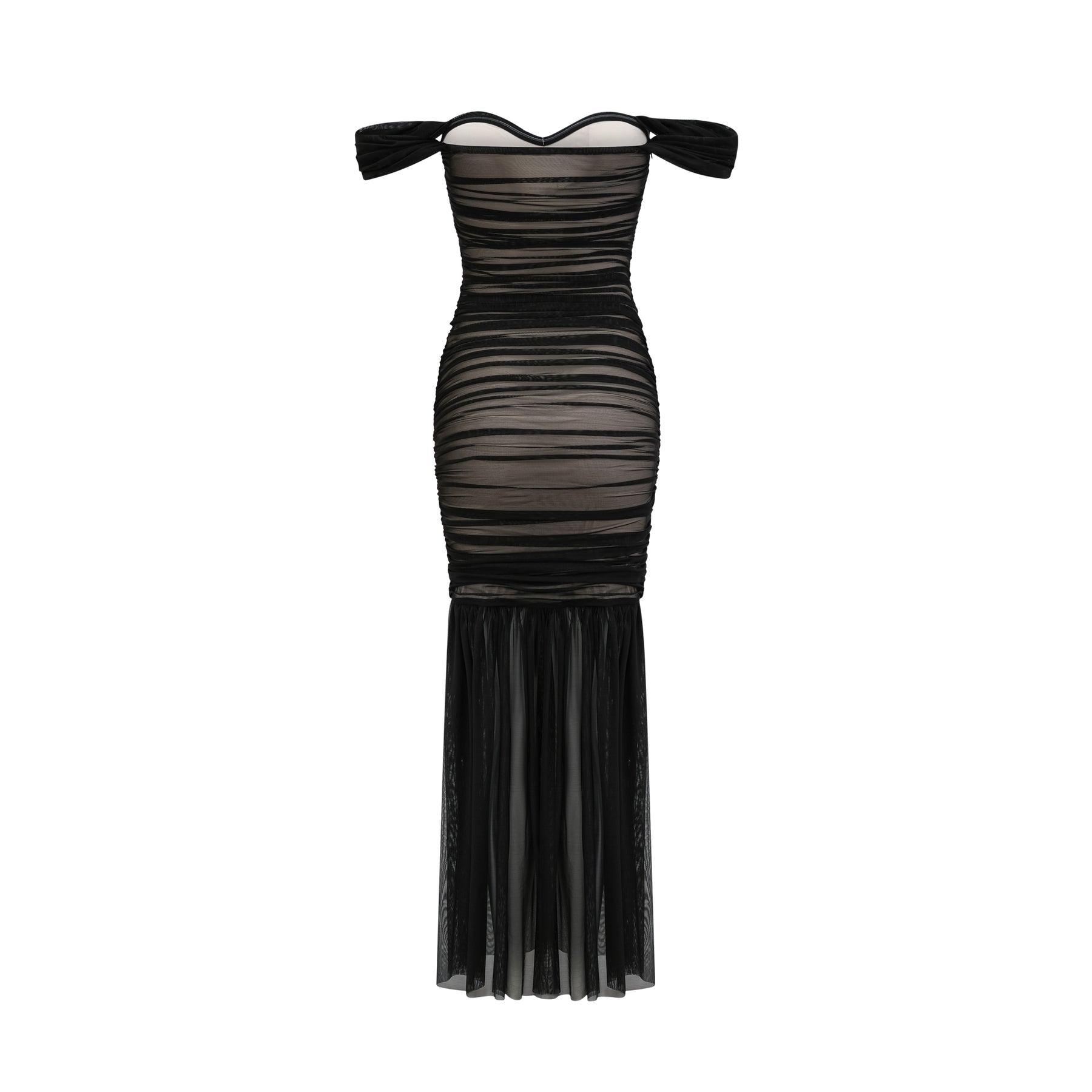 Melanie Dress - Fishtail Mesh Off-Shoulder Maxi Ruched Elegance