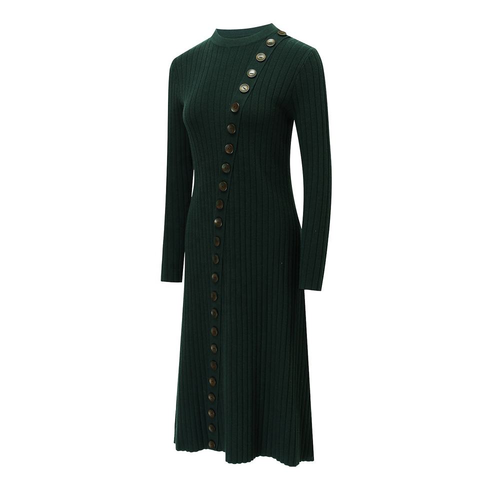 Made from a viscose, polyamide, and polyester blend, this modest knit maxi dress features a round neckline, long sleeves, and a flattering A-line silhouette. With button details and a vintage-inspired design, it offers both comfort and elegance. Perfect for spring, this solid pattern dress with standard thickness is a versatile piece for fashion-forward women seeking timeless style.