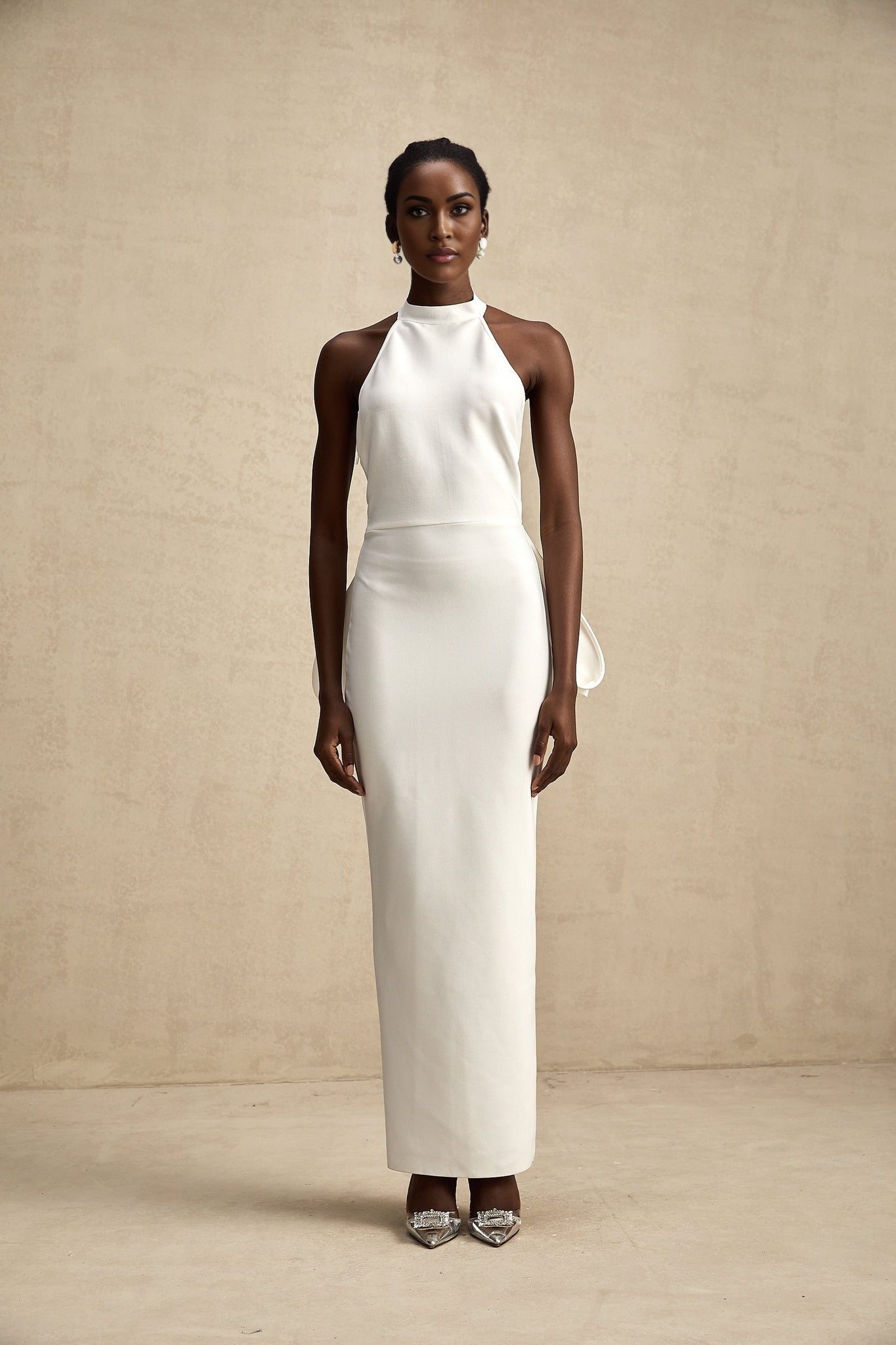 Elevate your style with our Natalia Dress Oversize-bow Maxi. This exquisite piece exudes sophistication with its oversize bow and rear bowknot detail, making a statement from every angle. Crafted with a blend of 75% polyester and 25% spandex, this sleeveless beauty features a round neck, rear slit, and a size zip fastening for effortless elegance. The open back design adds a touch of allure, while the maxi length ensures a graceful silhouette. Embrace luxury and charm with this must-have wardrobe essential.
