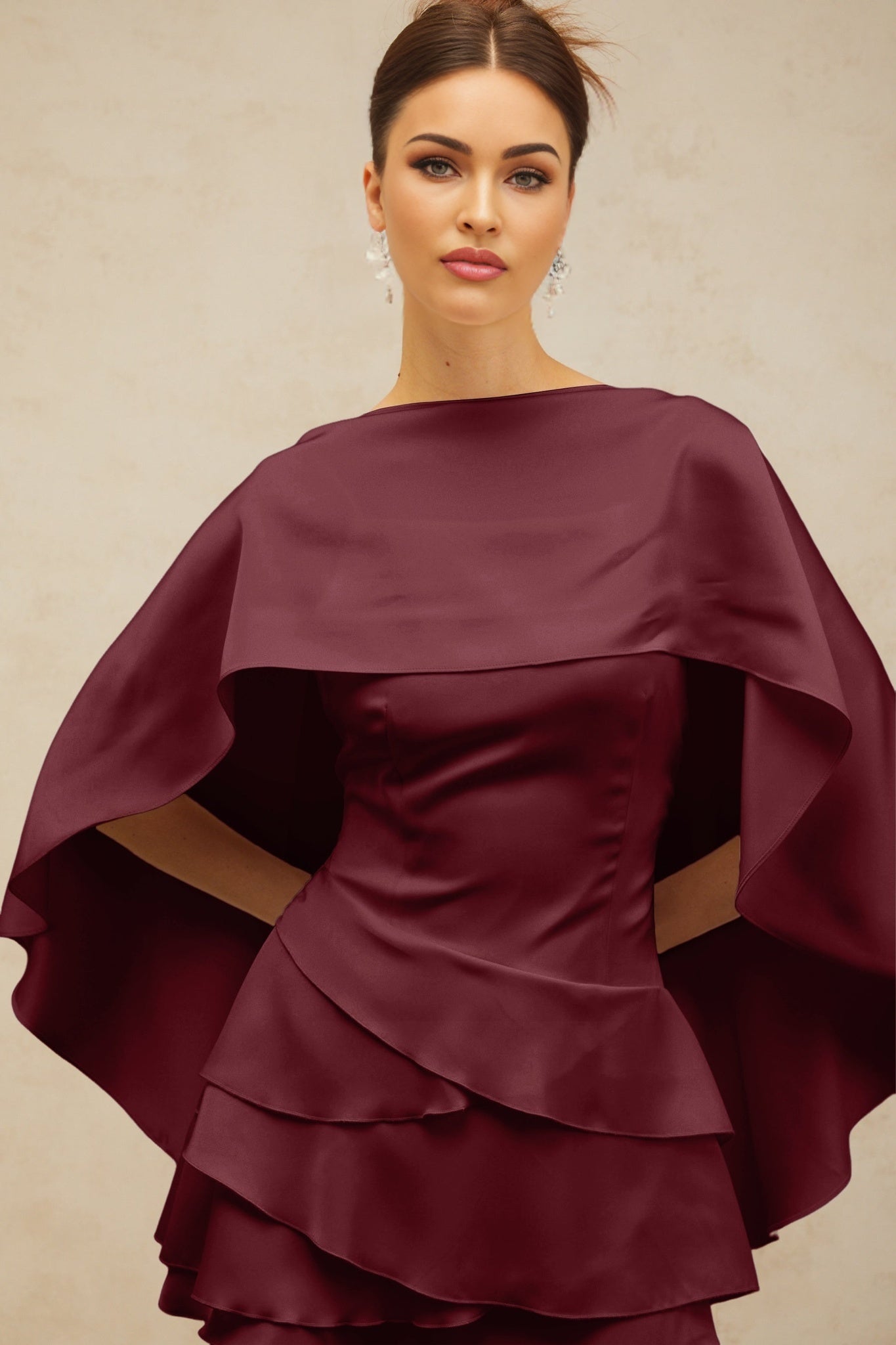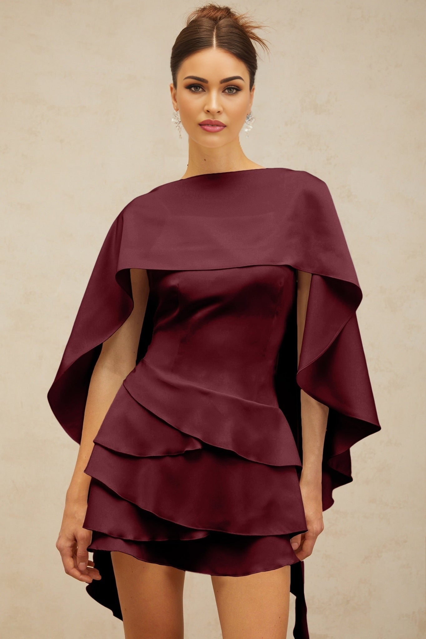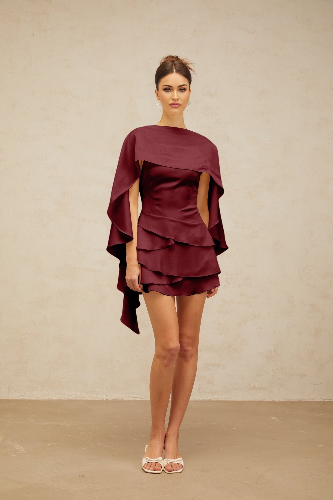 Paloma Mini Dress - Open Back - Satin Finish - Shawl Ruffle Thigh-Length