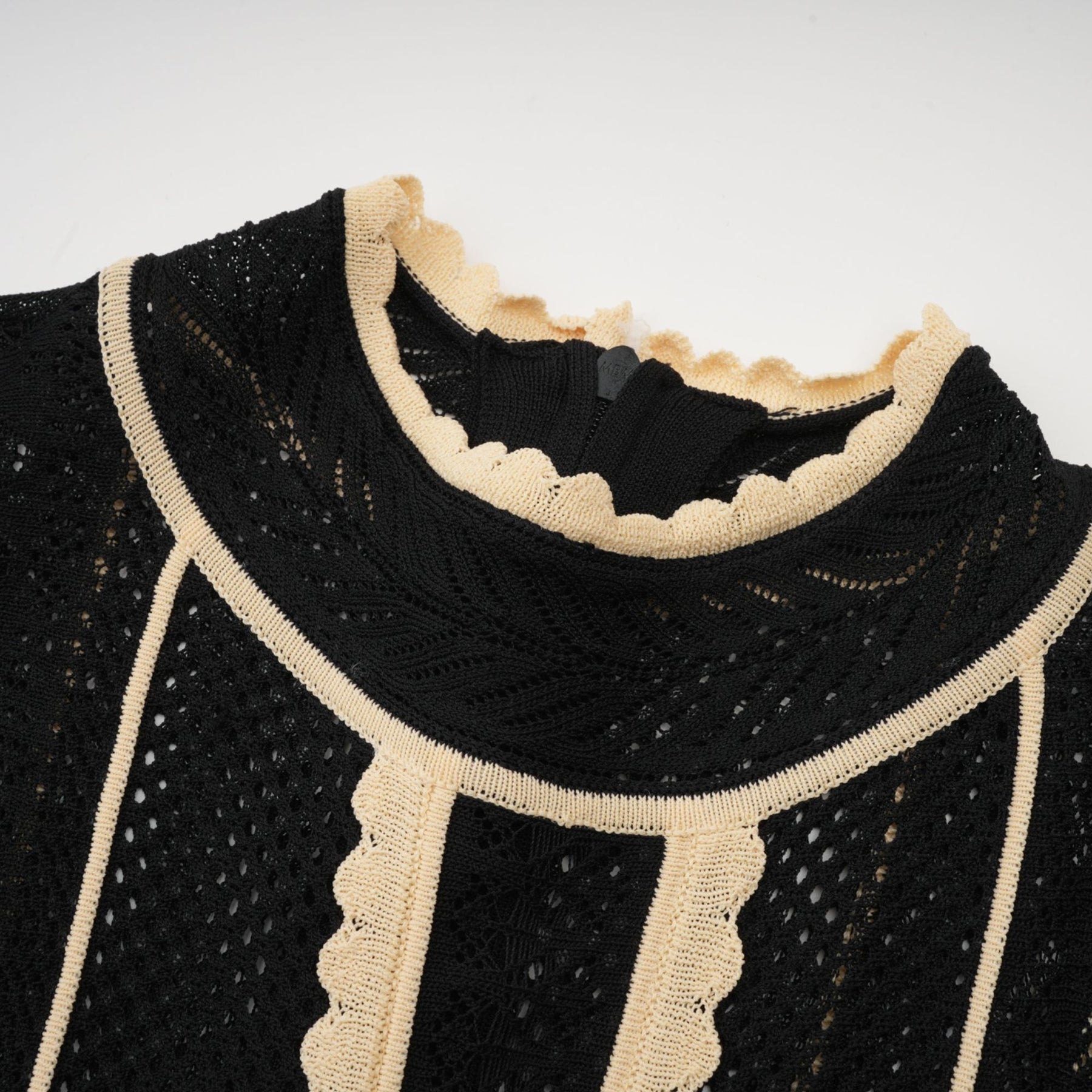 Redefine elegance with the Raffaelina Maxi Dress. Crafted with a meticulous eye for detail, this mesmerizing piece boasts a netted construction in classic black and white hues, accented by contrasting colors and vertical stripes for a timeless allure. The round neck and ruffled detailing add a touch of sophistication, while the semi-sheer finish exudes a hint of allure. Complete with a rear zip fastening and falling gracefully to ankle length, this dress is a statement in feminine charm. Fashioned from a blend of 70% Viscose and 30% Terylene, it epitomizes luxury and grace.