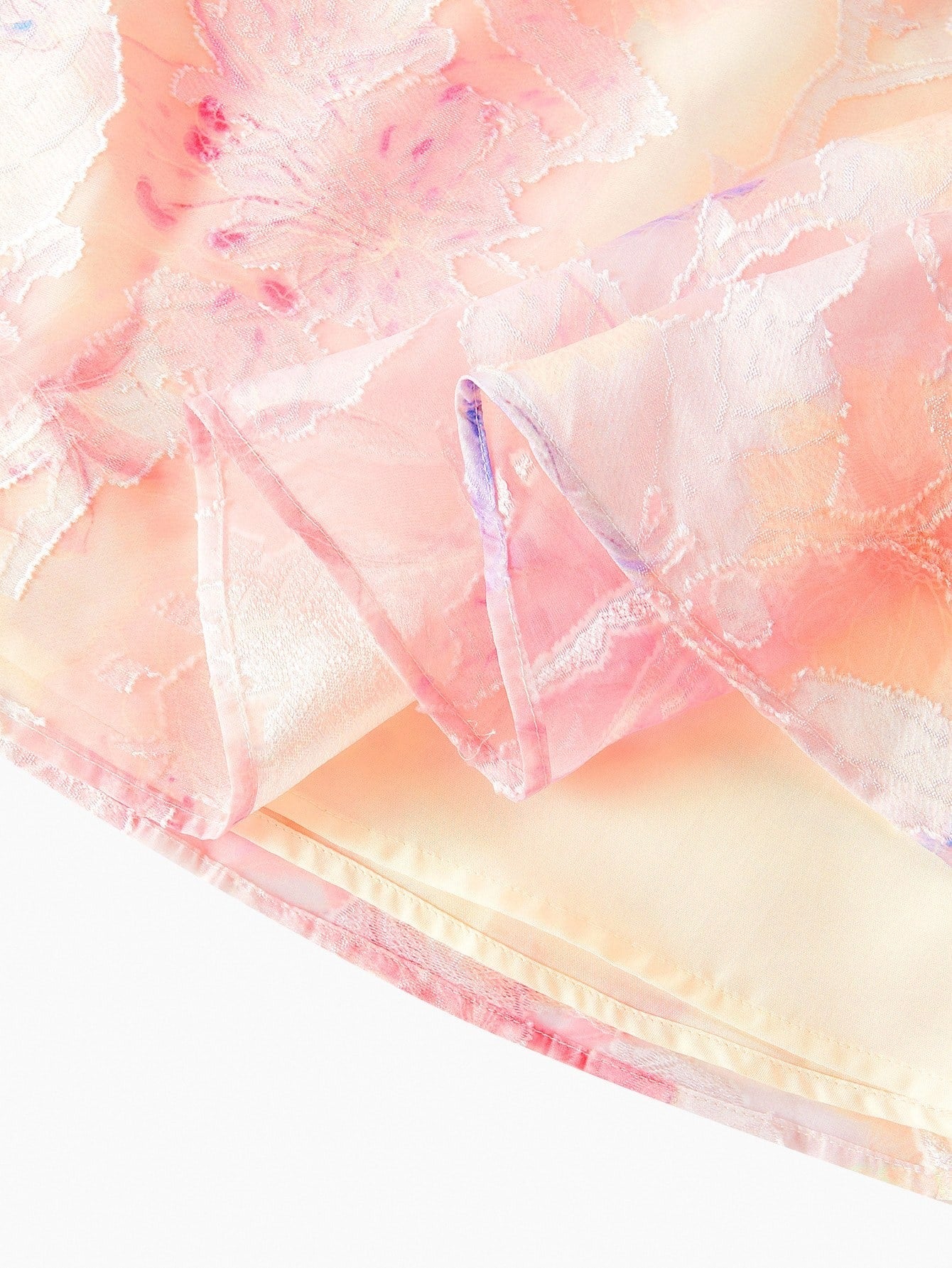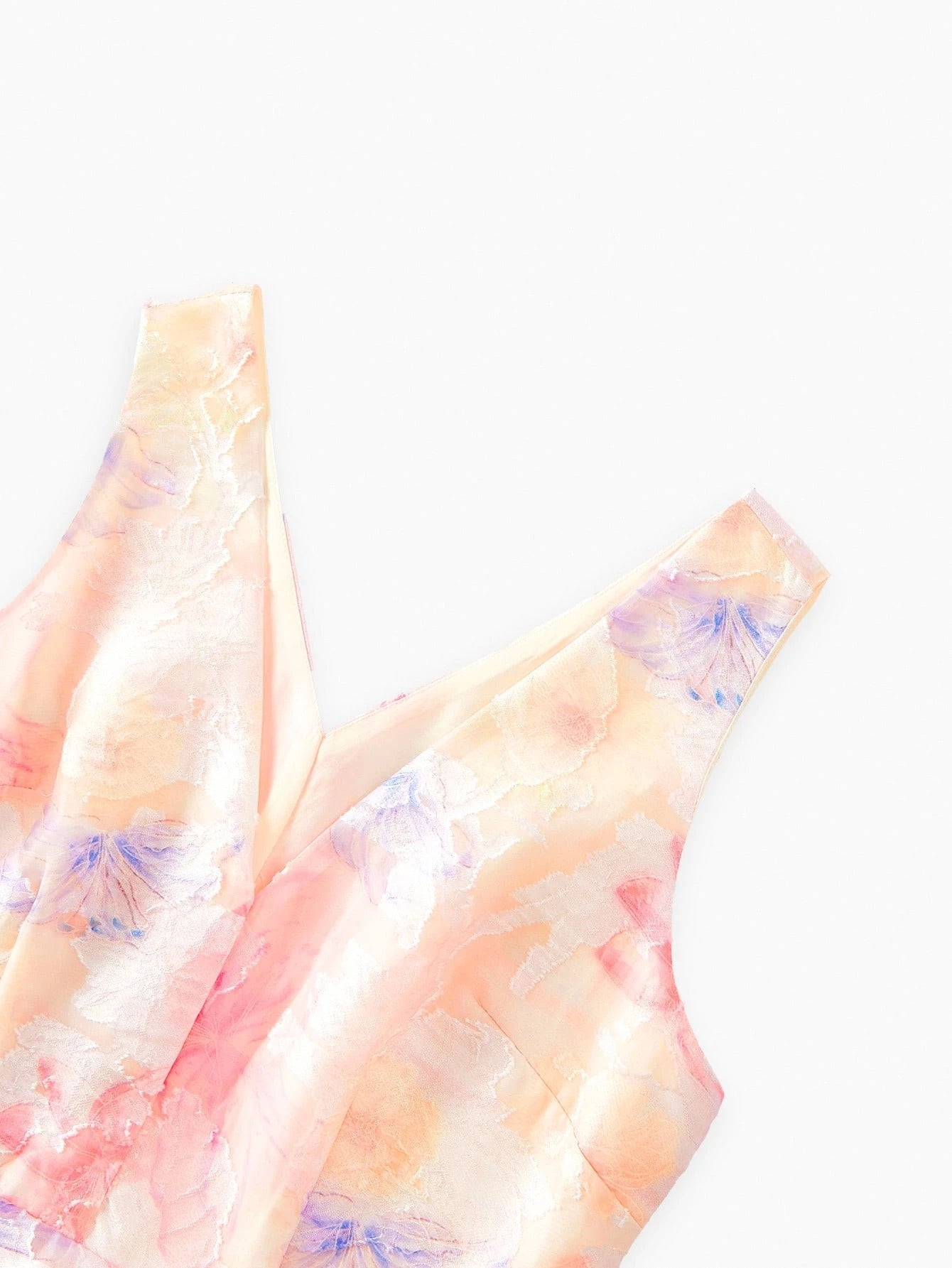 Indulge in the exquisite allure of the Rosalba Maxi Dress, a harmonious blend of sophistication and charm. This A-line masterpiece boasts a captivating V neckline and a high waist that accentuates your silhouette with grace. The backless design adds a touch of allure, while the ruffle hem exudes a whimsical elegance. Crafted from a luxurious woven fabric with a delicate all-over plant print in soft pink hues, this boho-style dress is perfect for special occasions. Sleeveless with a long length, this dress offers a regular fit and is ideal for weddings or festive celebrations. Elevate your style with this ethereal piece, hand wash or dry clean for lasting beauty.