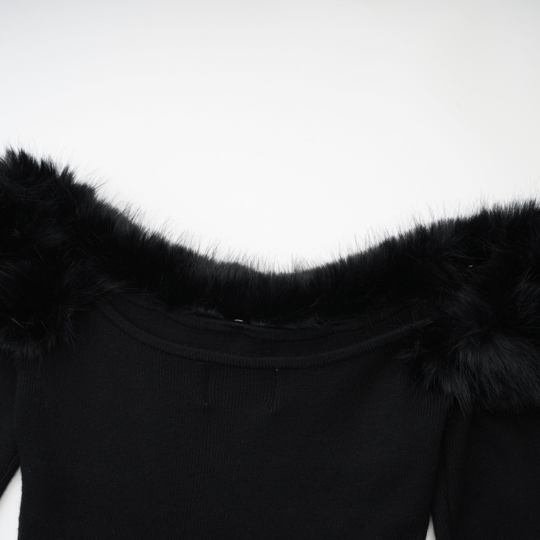 Indulge in the allure of timeless sophistication with our Skylar Dress Off-shoulder Mini. Witness elegance personified as this black masterpiece, with long sleeves and an off-the-shoulder design, adorns you in effortless grace. Accentuating its opulence are the detachable faux-fur collar and cuffs, adding a touch of glamour to its knitted construction. Embrace the chic allure of its mini length, tailored to perfection. Crafted from a premium blend of 80% Polyester and 20% Cotton, this dress is a fusion of comfort and style, designed to elevate your every occasion with unparalleled luxury and refinement.