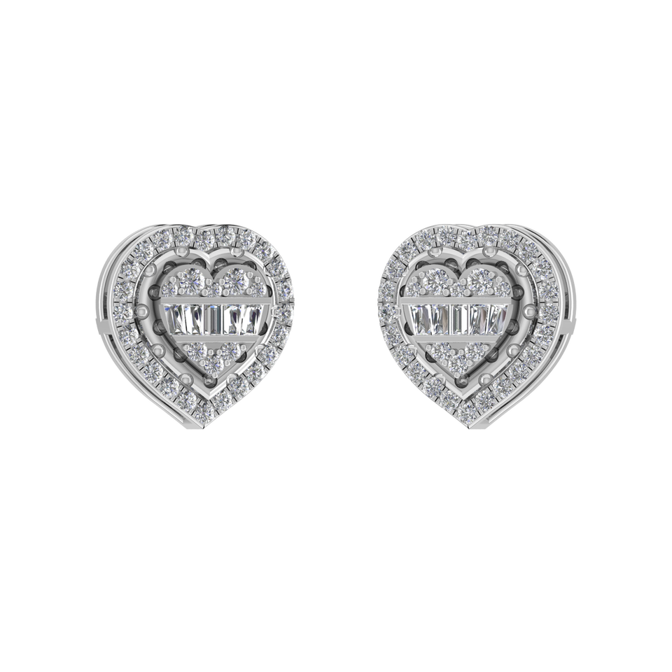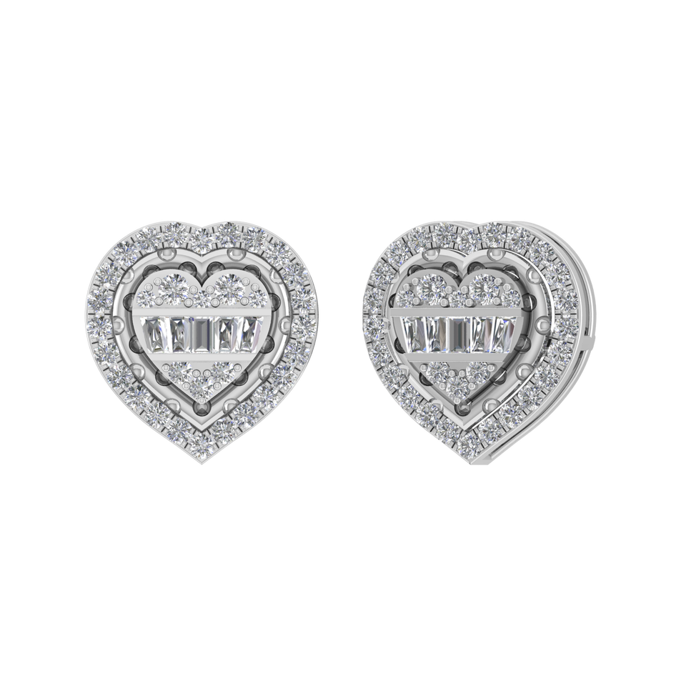 Make a lasting impression with these heart-shaped diamond stud earrings, crafted from 18K white gold with a flawless rhodium finish. Featuring 74 natural round brilliant-cut diamonds totaling 0.79 carats (I1 clarity, GH color), each earring is IGI certified — your guarantee of authenticity and quality. Whether for an engagement, anniversary, or as a luxurious gift, these fine jewelry earrings bring timeless elegance to every occasion.