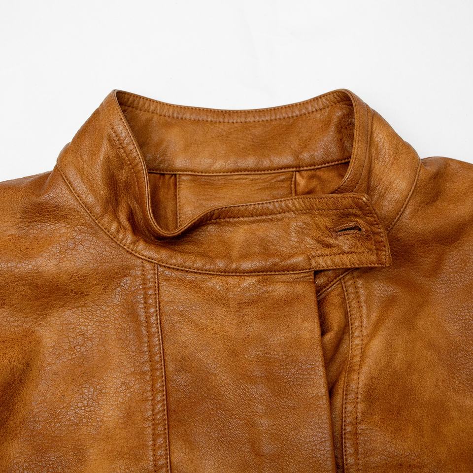 Stay stylish and cozy with this Vintage Brown PU Leather Bomber Jacket. Made with premium PU leather, this jacket features a classic design that never goes out of style. It is breathable, environmentally friendly, and windproof, making it perfect for any season. The stand-up collar and woven detailing add a touch of sophistication to your look. Whether you're out for a casual day or a night out, this bomber jacket is a must-have addition to your wardrobe.