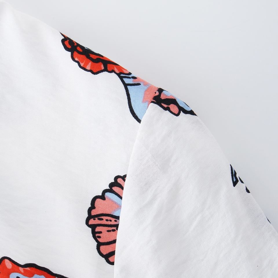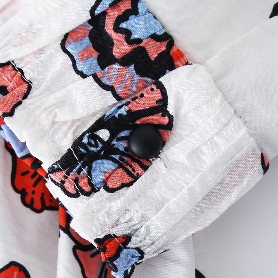 Long Dress – White Floral Print – Ruffle Detail – Elegant A-Line Style