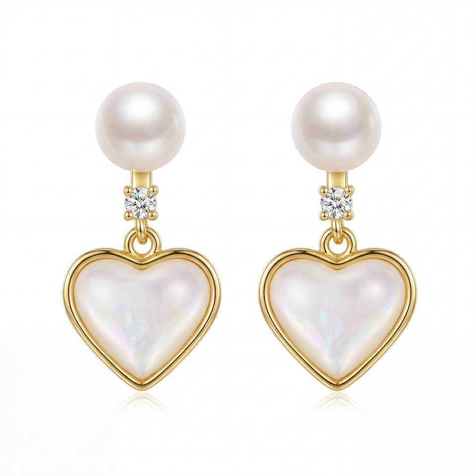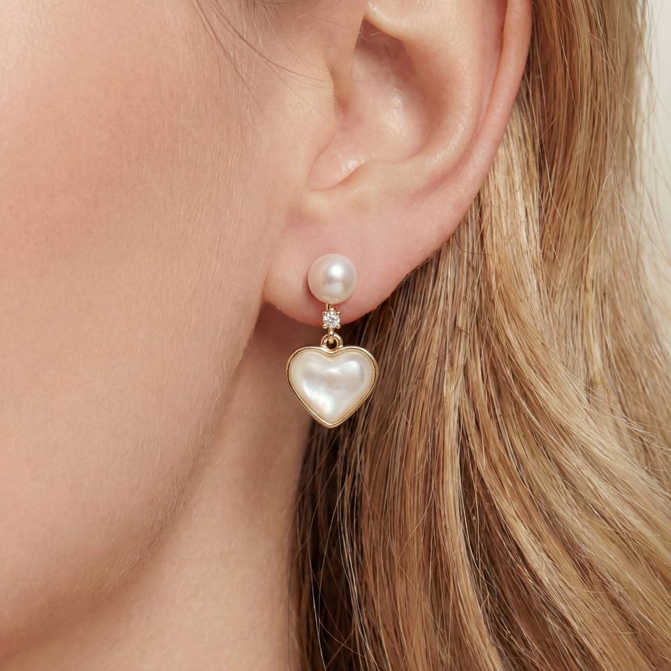 Finished with a radiant gold-plated coating, these earrings deliver a polished appearance while adding a touch of luxury and durability. The combination of the glowing pearl surface and the delicate heart-inspired silhouette makes them a standout accessory for both everyday styling and dressier occasions.