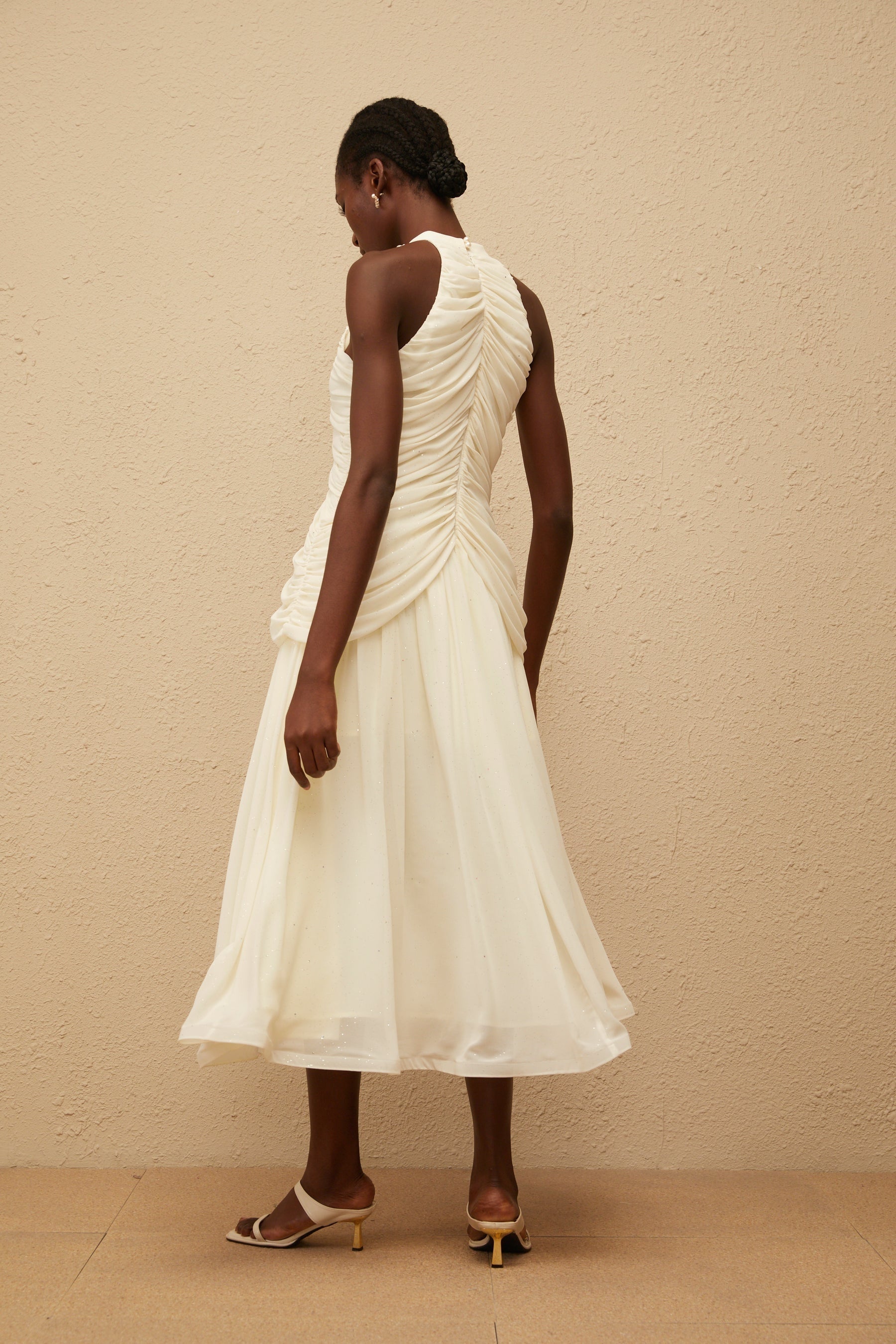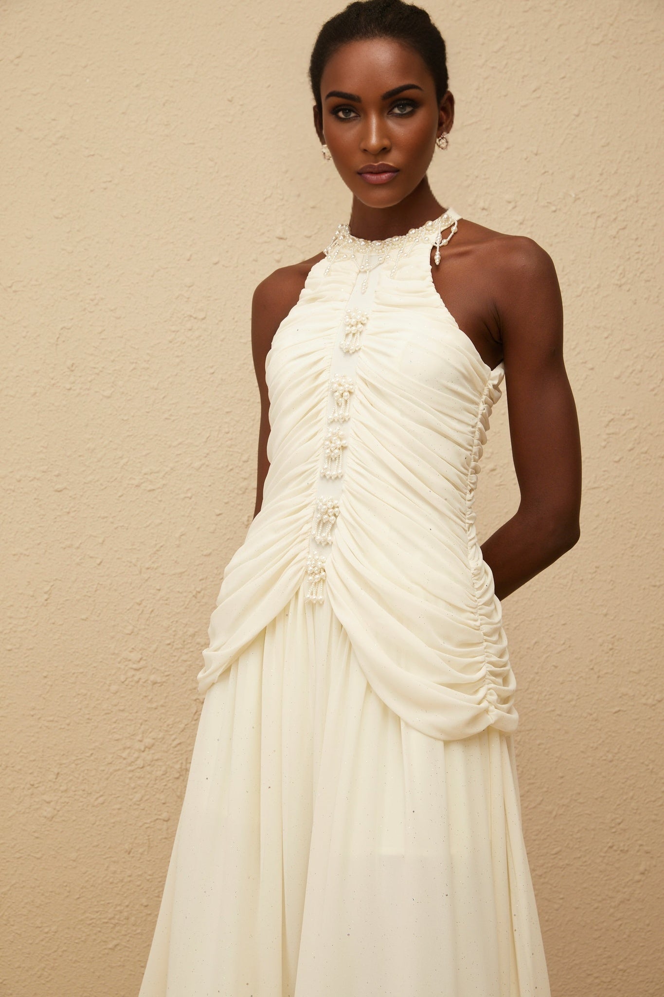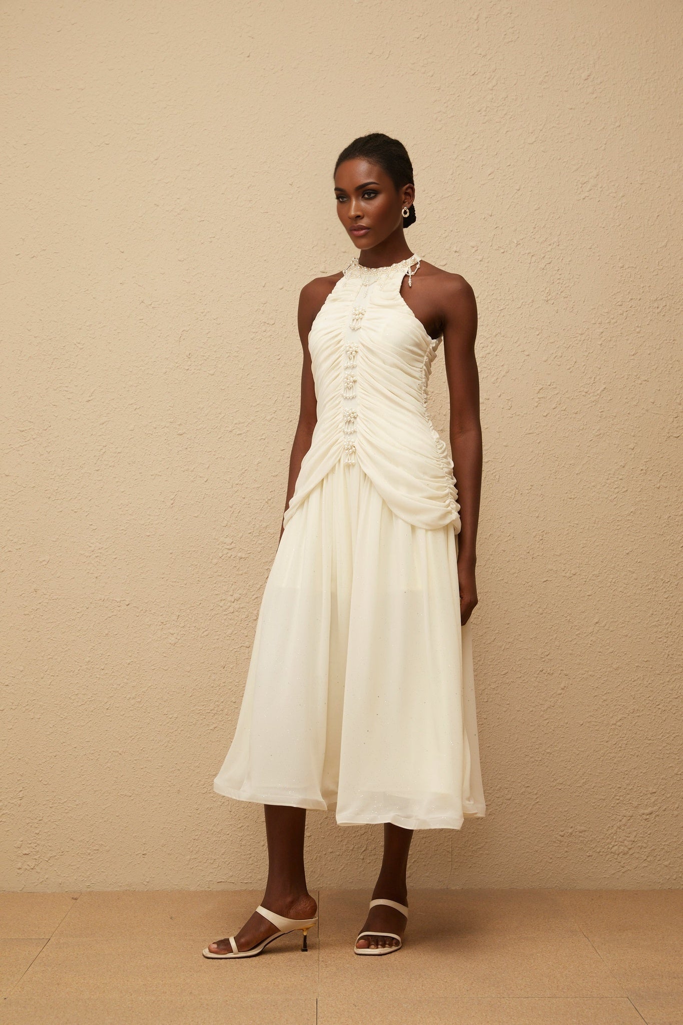 Willa Midi Dress - Halterneck - Sleeveless - Faux-pearl Embellishment - Glitter Detailing